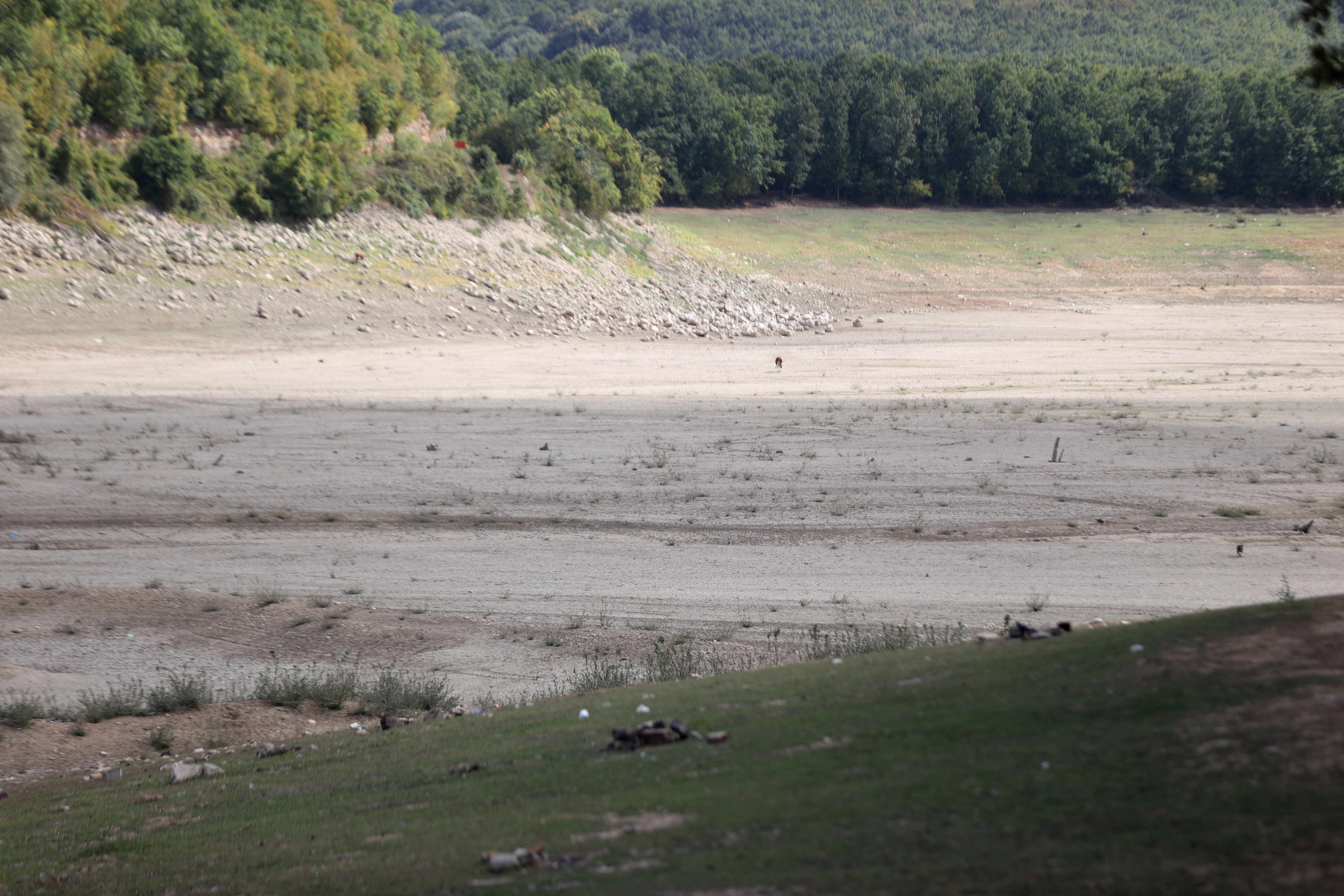 Barajın su seviyesinin düştüğü noktalarda çatlaklar oluştuğu ve bazı bölgelerde ise büyükbaş hayvanların otladığı gözlemlendi.
