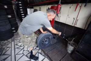 Protez bacağıyla oto lastik dükkanı işleten gazi Yüksel Ünal, mesleğinde başarıya ulaştı.