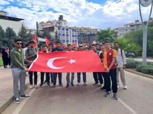 Kilis 7 Aralık Üniversitesi öğrencileri, Gazze’deki saldırıları kınamak ve Filistin halkına destek vermek amacıyla kampüs içerisinde bir yürüyüş düzenledi. Öğrenciler, uluslararası dayanıma ve insanlık onuruna vurgu yaparak çeşitli sloganlar attı.